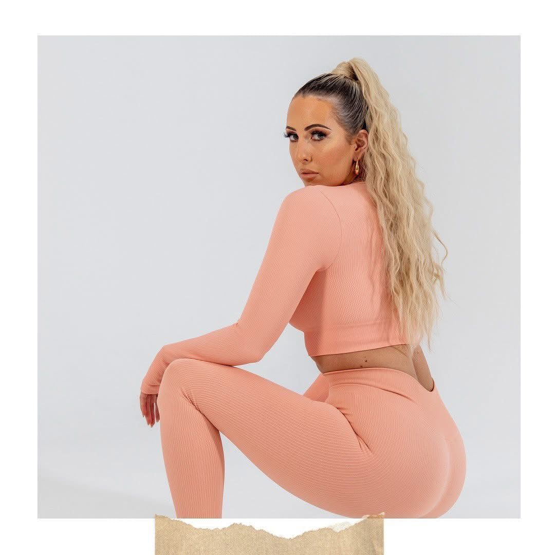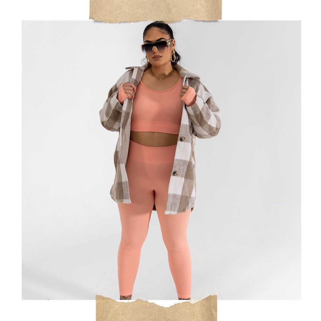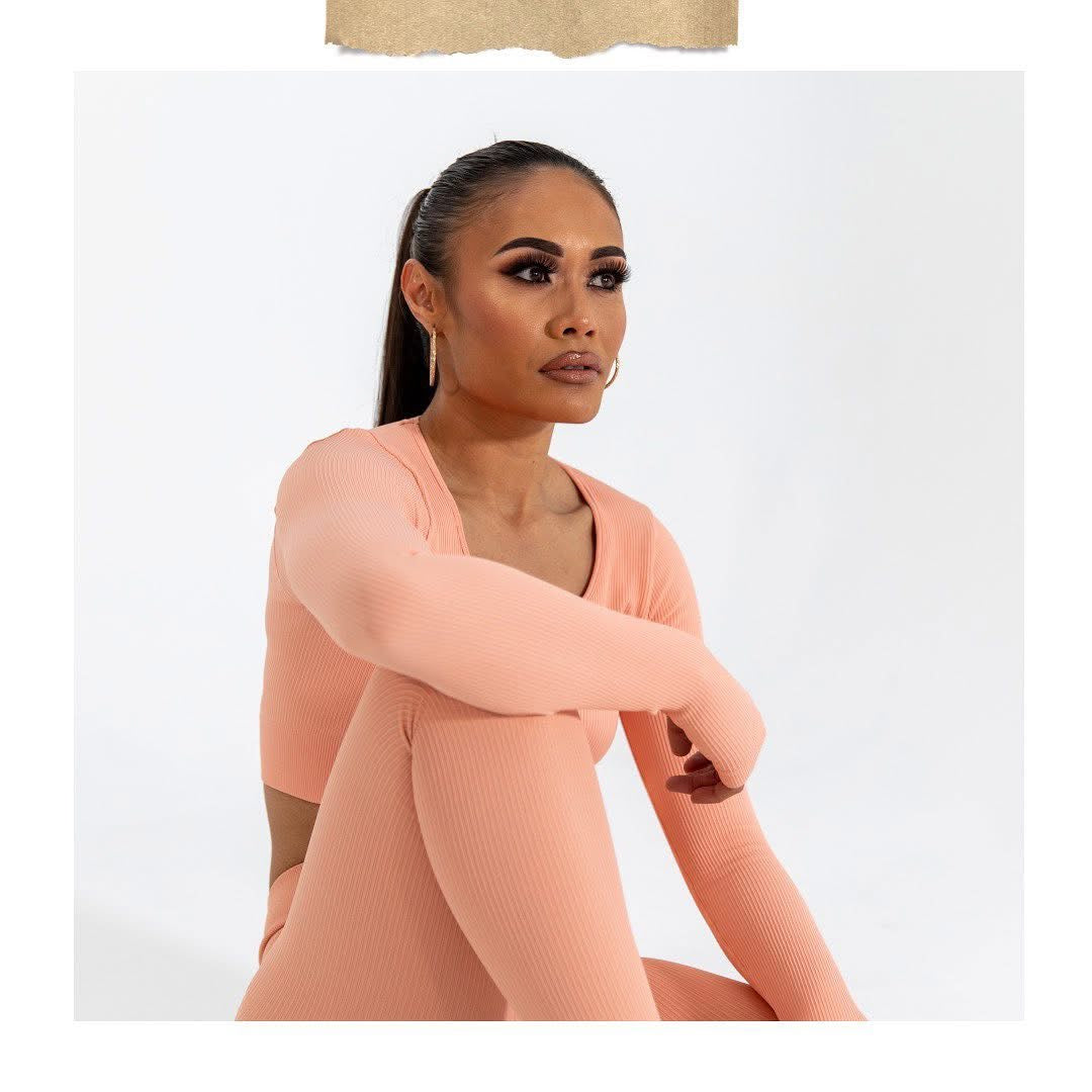 This product is a stylish two-piece set crafted for comfort and versatility. It features a ribbed fabric made from a premium blend of 90% nylon and 10% elastane, ensuring a soft, stretchy fit that moves with your body.